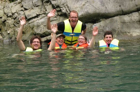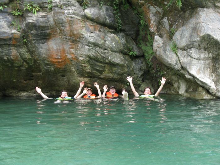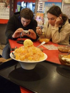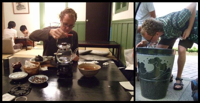 ![]() Auch das Wandern im Regen hat seinen ganz eigenen Charme. Hier in Zhiben. Wir fanden aber auch dampfende Quellen, die unsere vom Regenwandern beanspruchten Muskeln aufwärmten und entspannten. Wir fanden Wasserfälle klein und groß, die sich als schmaler Strahl auf direktem Weg tief ins Tal herabstürzten oder im Wald versteckt als wuchtige Kraft elefantengroße Felsen umspülten. Im ältesten Teehaus Taipeis entdeckten wir die Ruhe, die in ein paar Blättchen Tee und jeder Menge kochendem Wasser liegt. Selbst die ersehnten türkisen Wasserläufe haben wir am Ende gefunden und ausgiebig erkundet, eine Freude die allerdings für manch einen von der unermüdlichen Beteuerung unseres Flussguides getrübt wurde, den schönsten Teil des Flusses bekämen wir heute gar nicht zu sehen. ![]() Links der Normalzustand (Taroko), rechts der Taifunzustand (Zhiben) Ansonsten tat ich mein allerbestes, um die vier in die Vielfalt der in Taiwan vorhandenen Küchen einzuführen. Um das in knapp zwei Wochen bewerkstelligen zu können, schlemmten wir am laufenden Band. Scharfer Hotpot und scharfe Szechuan Küche, Auberginenberge, Austernomelettes, mit Algen umwickelte Reistaschen, Reisbrei mit Trockenfleischfasern, Eis aus roten Bohnen, süße Bohnensuppe, Wasserspinat mit Knoblauch, Gongbao Hähnchen, Schweineblutkuchen, Suppe mit Entenblut, Sojamilch mit und ohne frittierte Youtiao, Tofu von „stinky“ bis getrocknet, frische Muscheln und Krabben (für manch einen zum ersten Mal), jede Menge Fisch, tropisches Obst von Mangos über Pomelos bis Buddhaköpfe, und natürlich Teig- und Nudeltaschen bis zum Abwinken: Baozi, Mantou, Shuijiao, Hundun, Xiaolongbao… Die Mutigeren haben sich schließlich noch tapfer durch das Labyrinth der hier beliebten Eistee-Sorten, wahlweise auch mit Stärkebobbeln, Wackelpudding, Süßkartoffelgelee und ähnlichem darin, geschlagen. ![]() Beim Essen, natürlich. Dieses Mal sind es Din Tai Fung Nudeltaschen. Selbstverständlich haben wir nicht nur gegessen, sondern haben neben Wandern und Schwimmen auch alles andere unternommen, was man als ordentlicher Tourist in Taiwan so anzustellen hat – darunter Besuch des Nationalen Palastmuseums, einer Karaokebar, einer taiwanesischen Oper, Besuche zahlreicher Tempel, eines Fußmassageladens, mehrerer Nachtmärkte. Selbst das besonders bei ausländischen Studenten beliebte 7-11-Lotto haben wir gespielt – bei dem in jeder Filiale besagter Ladenkette, die zufällig am Wegrand liegt, ein Bier konsumiert werden muss. Erst so wird einem richtig bewusst, wie allgegenwärtig diese Läden sind. Nicht nur ich habe jedoch in eine Kultur eingeführt, auch die vier haben es geschafft, mich mit Skat und Bier und Ironie für zwei Wochen in die deutsche Lebenswelt zurückzuversetzen. In einem wunderschönen Restaurant direkt am stimmungsvoll beleuchteten Flussufer in Xindian haben wir schließlich das hier gängige deutsche Stereotyp vervollständigt: wir haben zusammen eine überraschend leckere Schweinshaxe gegessen. Für vier von uns fünfen übrigens die erste unseres Lebens. Liebe Grüße in die Welt hinaus, dazu ein ganz besonders lieber Gruß an Christine, Christoph, Emanuel und Roland! Kerstin Am Rande: In Sanzhan, einer kleinen Siedlung taiwanesischer Ureinwohner an der Ostküste der Insel, übernachteten wir in einem Gästehaus, von einem älteren Ehepaar betreut. Selig erzählt der Mann von früher, jedes Jahr sei er mit seinem Motorrad zwei Wochen lang um ganz Taiwan gefahren. Er kenne jede Straße der Insel, sogar noch aus der Zeit, in der es nur Schotterpisten gab. Damals habe er in einer Kleidungsfabrik gearbeitet, deren Maschinen allesamt aus Deutschland und der Schweiz kamen. Besonders lustig seien die deutschen Ingenieure gewesen, die manchmal zu Besuch kamen. Sie seien sehr fleißig gewesen, hätten Tag und Nacht gearbeitet. Sehr dick seien sie auch gewesen, und das, obwohl sie mittags nichts gegessen hätten, nur Taiwan Bier getrunken. Unser Gastgeber kann sein Lachen nicht mehr zurückhalten, als er schließlich pantomimisch darstellt, wie sehr die deutschen Bierbäuche im Weg gewesen seien, als unten an den Maschinen Einstellungen nötig wurden.