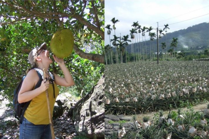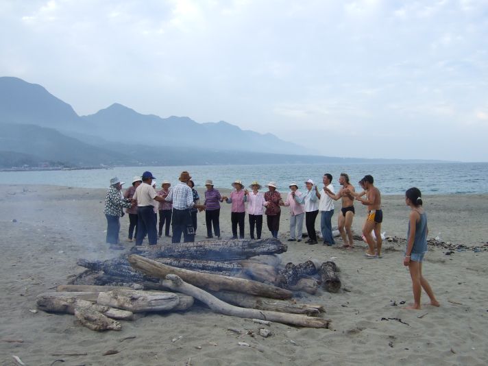 Sunday, 18. July 2010Der wilde OstenDie zweite (und leider auch schon letzte) Woche meiner Ferien habe ich in und um den Ort Taidong an der Ostküste Taiwans verbracht, Ort meiner Sehnsucht seit meinem letzten Besuch dort. Dieser ist schon eine ganze Weile her – ausnahmsweise weiß ich es ganz genau, denn es war zum Jahreswechsel 2000 / 2001. In meiner Erinnerung blühen meterhohe Weihnachtssterne dunkelrot vor hellblauen Bergen, erstrecken sich Reihen von Orangenbäumen auf Hügeln, die sanft dem Meer entgegen fallen. Das Wasser leuchtend türkis, die rauen Felsen am Ufer ein rauchiges schwarz, die Teeplantagen tannengrün. ![]() Mother Land Mountain Vacation Guest House in den Bergen Dulans, nahe Taidong Taiwans Süden gehört der tropischen Klimazone an, auf Mother Land konnte ich das am eigenen Körper erfahren. Das Hostel liegt am Ende eines schmalen Weges, welcher einen dünn besiedelten Berg hinauf führt, inmitten einer Landschaft, die man bei uns zu Hause wohl als Dschungel bezeichnen würde. Direkt vor dem Haus liegt ein vermutlich von diversen Taifunen weichgeschliffener Felsen, von dem aus man über das Palmenmeer hinweg freien Blick auf den Pazifik genießen kann. Die Küche liegt im Freien, wenn auch überdacht, ebenso die Toilette und die Duschen, letztere ohne Dach und ohne Wände – nur auf der einen Seite ist man durch einen Vorhang vor den Blicken der anderen Gäste geschützt. Beim Duschen ist man daher umgeben von wild wucherndem, sattem Grün, daraus hervor ragen Palmen, regenschirmartige Blätter, überdimensionierte Farne und leuchtende, rosafarbige Blumen in Kopfgröße. Schmetterlinge flattern umher, hin und wieder blinzelt ein Makake aus den Palmen auf einen herunter. Zum Glück interessieren sich letztere im Allgemeinen eher für Bananen als für duschende Touristen. Statt Weihnachtssternen und Orangen sind im Sommer Kokosnüsse, Ananas, Papayas, Mangos, Litschis und Jackfrüchte dabei reif zu werden, letztere hängen am Baum wie stachelige grüne Kartoffelsäcke und sind um einiges größer als mein Kopf. ![]() Eine vergleichsweise kleine Jackfrucht links, Ananasplantage rechts Dass der Dschungel nicht nur von niedlichen Affen und bunten Faltern bevölkert ist, merke ich, als ich eines abends auf die Idee komme, nach Anbruch der Dunkelheit zu duschen. Nun teile ich mir den Schein der Lampe mit Horden an handtellergroßen Motten, langbeinigen Spinnen und buntleuchtenden Käfern in Dimensionen, wie man sie in Deutschland höchstens in aufgespießter und katalogisierter Form findet. Hin und wieder hüpft mir ein kleiner, vielfarbiger Frosch um die Füße. Was jenseits des gelben Lampenscheines liegt, möchte ich gar nicht erst wissen. In meinem Gästezimmer befindet sich ein Plastikeimer, für den Fall, dass mich des Nachts ein dringendes Bedürfnis überkommen sollte. Mir wurde davon abgeraten, den Weg zur Toilette zu wagen, da Schlangen hier nachtaktiv und gerne auch mal giftig sind. Auch ein Paradies hat seine kleinen Mängel, dieses meine hat aber vor allem einen: das Wetter. Genauer gesagt die Sonne, unerbittlich ist sie hier. Schon früh am morgen bewegt sich das Thermometer steil Richtung 40 Grad Celsius, zusätzlich ist es dschungelfeucht. Mein einziger Wanderversuch muss nach zwei mühsamen Stunden abgebrochen werden. Zum Glück stolperte ich mit meiner Wanderpartnerin da gerade an einem Tempel vorbei, wo wir nicht nur Schatten und frischen Tee bekamen, sondern auch kopfschüttelndes Mitleid und - was noch viel wichtiger war - den hinweis auf eine Abkürzung zum Hostel zurück. Statt Wandern habe ich mich daher mit (ein wenig) weniger anstrengenden Aktivitäten begnügt wie in einem schattigen Park in Taidong Fahrrad zu fahren (auch schon extrem schweißtreibend) oder damit, das traditionelle Drachenbootrennen zum Drachenbootfest anzuschauen. Dieses Fest ist eines der wichtigsten taiwanesischen bzw. chinesischen Feiertage und geht auf Rettungsversuche zurück, die vor weit über 2000 Jahren veranstaltet wurden, als sich ein beliebter Dichter und Staatsmann nach ungerechter Behandlung durch den König in die Fluten eines Flusses stürzte. Nachmittags bin ich einige Male mit dem Hostelpärchen und ein, zwei anderen Gästen hinunter ans den Pazifik gefahren. An einen weiten Sandstrand in einer geschützten Bucht, den wir meistens ganz für uns alleine hatten, da viele Taiwanesen sowohl Angst vor Wasser als auch vor der Sonne haben. Einmal sind wir erst am frühen Abend dort angekommen, da haben wir uns den Strand mit einigen Ami geteilt. Die Ami sind einer der 14 Ureinwohnerstämme Taiwans, die allesamt nicht chinesischen, sondern austronesischen Ursprungs sind. Neuere Theorien gehen sogar davon aus, dass Taiwan selbst der Ursprungsort oder zumindest Ausgangspunkt aller austronesischen Völker ist, aber das nur am Rande. Diese Ami jedenfalls, vor allem ältere Frauen, tanzten einen traditionellen Tanz um zu feiern, dass ihr riesiges Feuer gelungen war, in dem sie unter anderem Süßkartoffeln gegart hatten. Sie ließen uns nicht nur mittanzen, sondern auch mitessen. Ein weiterer Lieblingspunkt dieser Reise: eines morgens bin ich früh auf den Felsen neben der Küche geklettert, um von dort den Sonnenaufgang über dem Meer zu genießen. Zu meinen Füßen ein Meer aus grün, neben mir auf dem Fels einzelne, riesige weiße Blüten. Im Hintergrund spielte die Symphonie des Dschungels: ein Klangteppich gespielt von Zikaden, in forte, darüber gelegt in unregemäßigem Rhythmus der Gesang der Affen, die Rufe ungesehener Vögel. ![]() Kleines Drachenbootrennen zum Drachenbootfest in Taidong ![]() Tanz der Ami am Strand Nach dem Aufenthalt in den Bergen habe ich noch zwei Tage direkt in Taidong verbracht, einer entspannte Küstenstadt, die mich an ein stereotypes Kalifornien erinnert - in Rhythmus, Wetter und Lebensgefühl. Ich habe dort eine Freundin besucht, die ich das letzte Mal vor vielen, vielen Jahren gesehen habe, als sie zwei Wochen lang bei mir in Fre