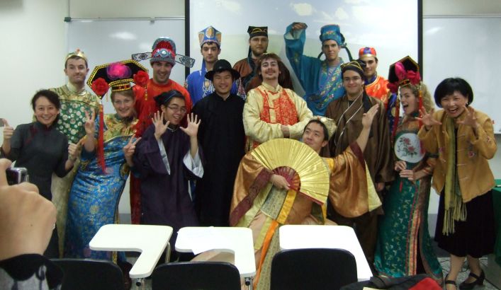 ![]() Gege Kerstin Ansonsten habe ich letzte Woche nicht nur meine Midterm-Prüfungen, sondern auch noch das chinesische Äquivalent zum englischen TOEFL-Test (also einen standardisierten Sprachtest) hinter mich gebraucht und bin dementsprechend erschöpft. Das dritte Quartal im intensivst-Intensivkurs hier zehrt an mir. Die Krankheitsquote unter meinen Kommilitonen steigt exponentiell. Auch ich bin jetzt erst, drei Wochen nachdem ich krank geworden bin, so langsam wieder gesundheitlich auf der Höhe. Ein typischer Tag aus der letzten Woche: 6 Uhr aufstehen, letzte Hausaufgaben machen, wiederholen. 8-12 Uhr: 4 mal hintereinander Intensivkurs, das heißt 4 Lehrer, 4 Lehrbücher. 12-13 Uhr: Vortrag im Sprachzentrum auf Chinesisch, nebenher Verzehren eines von der Schule gestellten Mittagessens. 13-23 Uhr Hausaufgaben, Lernen in einem Café oder der Bibliothek. Dazwischen kurze Abendessenspause. Nach Hause, Wäsche waschen, Aufräumen, ähnliches. Zwischen 24 und 1 Uhr ins Bett. Oder auch noch mal wiederholen. Und wieder von vorne. Da ich unter derartigen Umständen nicht besonders viel berichtenswertes erleben konnte, werde ich stattdessen versuchen, eine Frage zu beantworten, die sich nach Lektüre des obigen Absatzes aufdrängen mag, bzw. die mir auch schon mehrfach gestellt wurde: WARUM?? Warum tust du dir das an? Und auch: warum ist das nötig, du lernst doch schon so lange? Ich werde mit der zweiten Frage beginnen: ![]() Ein sehr einfaches und zwei etwas kompliziertere Schriftzeichen 3. Die Redewendungen Neben Redewendungen a la „Morgenstund hat Gold im Mund“ gibt es im Chinesischen noch eine gesonderte Kategorie Sprichwort, die sogenannten Chengyus (uebersetzt sowas wie Sprache werden). Diese bestehen fast immer aus vier Schriftzeichen und ihre Besonderheit liegt darin, dass sie viel formelhafter und viel stärker fester Bestandteil der Sprache sind, als es Sprichwoerter in unserem Sinne sind. Manche werden wie Nomen gebraucht, andere wie Adjektive, andere wie Verben. Vor allem in gehobenen geschriebenen Texten, wie z.B. Tageszeitungen, aber auch in der gesprochenen Sprache sind diese wie Sand am Meer zu finden. Im Gegensatz zum Deutschen zeugt ihre Verwendung von gutem Stil. In der Kürze liegt schließlich die Würze. Da sie überwiegend aus dem klassischen Chinesisch stammen, entspricht haeufig weder die Bedeutung der einzelnen Zeichen noch die grammatische Struktur des ganzen Sprichworts der modernen Sprache. Selbst allerdings wenn man das klassische Chinesisch lernt, erschliesst sich die Bedeutung der Chengyus nicht unbedingt. Viele Chengyus zitieren klassische Texte, man muss daher die Geschichte oder den Mythos dahinter kennen, um das Sprichwort verstehen zu koennen. Es gibt also keine Hilfe, man muss sie einfach auswendig lernen – wie das im Übrigen auch die Schueler hierzulande tun. Da ist nicht nur aller Anfang schwer. Damit kann man sich ein ganzes Weilchen beschaeftigt halten – je nach Zählart gibt es im modernen Chinesisch 5000-20 000 solcher Chengyus (Im Wiktionary finden sich knapp 1000 Stück mit englischer Übersetzung, auf einer chinesischen Seite sind 11522 Stück gelistet). Gut Ding will schließlich Weile haben. Ein Beispiel: chu chu cao cao – woertlich etwa Ort-Ort-Name-anderer Name. Heißt aber so viel wie ein Mensch, der ständig misstrauisch ist.