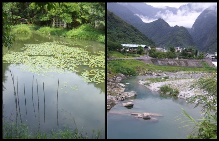 ![]() Ruhe im Teehaus (Wistaria) und Suche nach Abkühlung ![]() Lnks Taroko Schlucht, Rechts Tal der Puppen bei Wulai