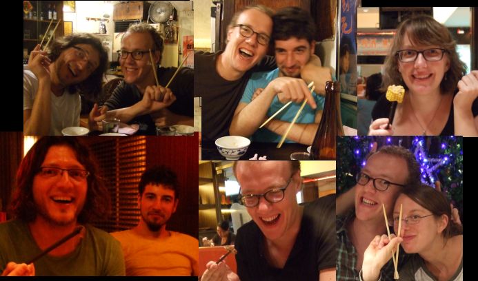 ![]() Im Hostel. Oben Mitte Thomas, oben rechts einer der beiden sehr warmherzigen Hostelmitarbeiter. Die anderen Gäste kommen aus Hongkong und Taiwan... Zufällig haben wir uns ein Hostel ausgesucht, dessen Besucher zu 85% Taiwanesen sind Ansonsten noch nachträglich FROHE OSTERN an alle!