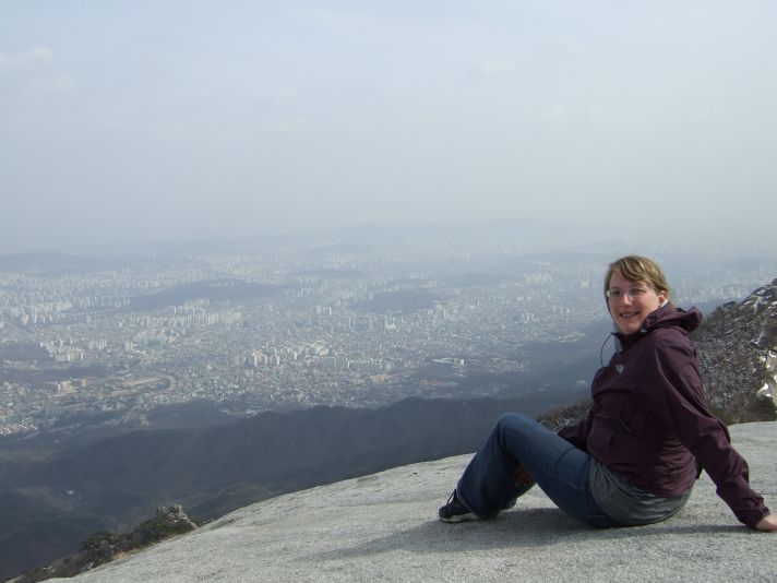 ![]() Blick auf Seoul vom Gipfel des Bukhansan Was wir von den Koreanern lernen sollten: Badehäuser in koreanischen Dimensionen zu koreanischen Preisen - Spielhallen mit Karaokekabinen - Fußbodenheizungen in Hostels wie Restaurants - das auf dem Boden Sitzen in selbigen - Liebe zum Essen - mindestens 5 verschiedene Beilagenteller selbst in günstigsten Fastfoodrestaurants zu servieren – beheizte U-Bahn- und Klositze – herzerwärmende Freundlichkeit gegenüber verwirrten Ausländern
