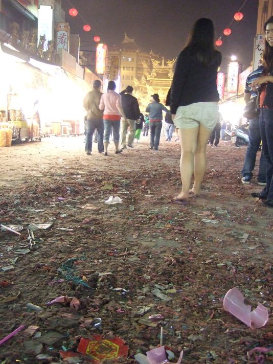 Friday, 12. February 2010Der rote Advent Eine Woche voller Prüfungen geht zu Ende und ich bin fix und fertig – und glücklich, weil ich nun eine ganze Woche frei bekomme. Am morgigen Samstag ist nämlich der letzte Tag des chinesischen Mondjahres, am Sonntag beginnt das Jahr des Tigers. Da das chinesische Neujahr in seiner gesellschaftlichen Bedeutung ungefähr unserem Weihnachtsfest entspricht, muss in der nächsten Woche niemand arbeiten - oder lernen. Soweit es nur irgend geht, fährt jeder Taiwanese (oder auch Chinese) in dieser Zeit zu seiner Familie. Man sagt, Taipei verliere in dieser Woche über die Hälfte seiner Einwohner, so gut wie alle Läden haben geschlossen. Diese Geisterstadt werde ich allerdings nicht erleben, da ich morgen früh mit 1,5 Millionen anderen nomadierenden Hauptstädtern gemeinsam per Bus Richtung Süden aufbrechen werde. Ich werde die Feiertage wie es sich gehört mit meiner (Gast)familie in Tainan bzw. zum Teil mit den (Gast)großeltern in Pingdong verbringen. Selbstverständlich werde ich berichten! Und: Ich freue mich schon auf den Stau. ![]() Neujahrsmarkt in der Dihua-Straße, Taipei Dementsprechend verhält sich auch die chinesische Version eines Weihnachtsmarktes. Nach Abschluss meiner letzten Prüfungen am Donnerstag bin ich mit einem ganzen Haufen Kommilitonen zu einer der ältesten Straßen Taipeis gefahren. In dieser werden traditionelle chinesische Medizin sowie verschiedenste Leckereien verkauft. Auch zu normalen Zeiten schon ziemlich belebt, wird die Dihua Straße in den Wochen vor dem chinesischen Neujahr zu einem Getümmel, das jeden Weihnachtsmarkt übertrifft. Zusätzlich zu den schon vorhandenen Läden drängt sich nun Stand an Stand. Marktschreier mit Megafonen in der Hand erheben sich aus dem Menschenmeer empor, indem sie mitten in der engen Gasse Leitern aufstellen. Verkaufsassistenten in Kostümen aller Art versuchen Passanten mit schmeichelnden Worten oder auch handfesten Gesten zu bestimmten Ständen zu treiben, strandgutgleich bleibt einem nichts anderes, als sich von der Menge mitspülen zu lassen. Links getrocknete Tintenfische, rechts gigantische Säcke voll Haselnuss und Mandelkern, ein Stückchen weiter links taiwanesischer Oolong Tee, rechts riesige Bottiche mit echt deutschen Gummi-Süßigkeiten. Alles was an Ess- oder Trinkbarem angeboten wird, kann man vor dem Kauf auch probieren, ein unablässiger Reizfluss also nicht nur für Augen und Ohren, sondern auch für die Zunge.